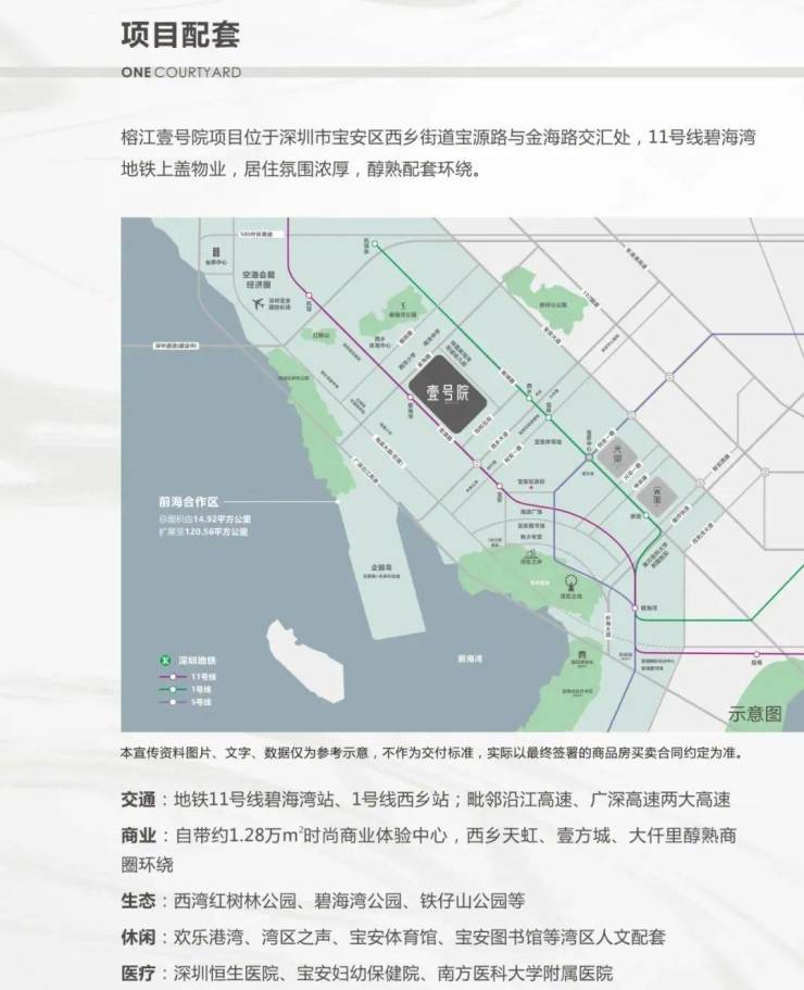项目属于11号线碧海湾地铁上盖物业。与11号线碧海湾站无缝接驳。同时项目临近1号线地铁西乡站,属于双地铁辐射物业。乘坐11号线一站可达宝安中心,两站可达前海湾枢纽站换乘1/5号线。