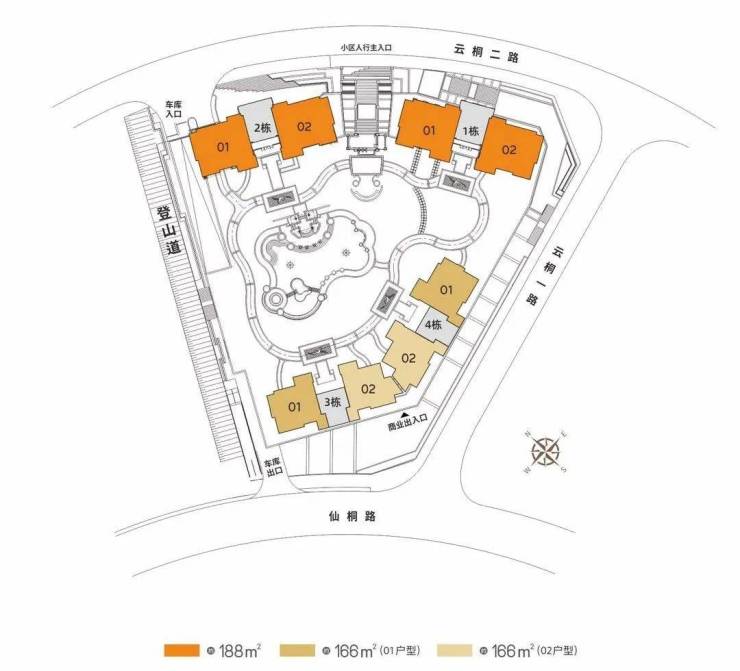 梯户比:1栋、2栋为3梯2户。3栋、4栋为2梯2户