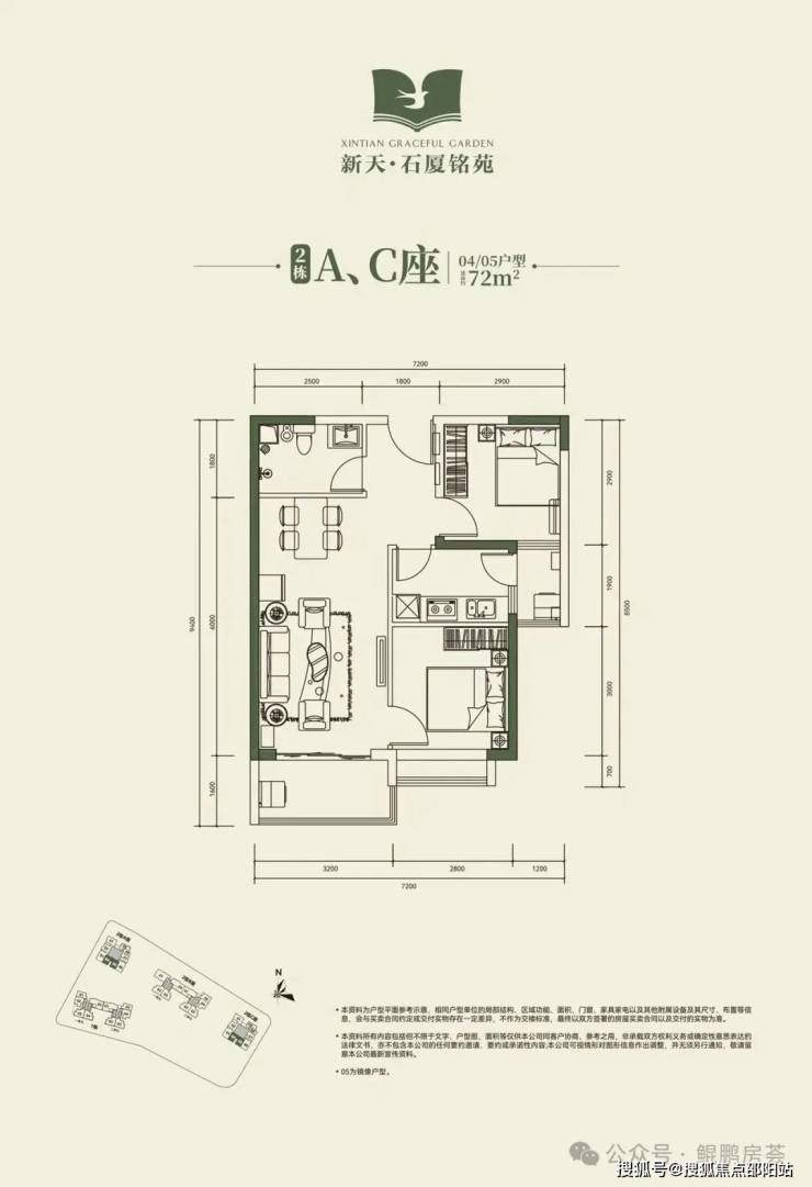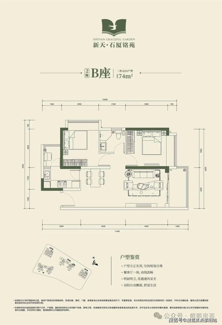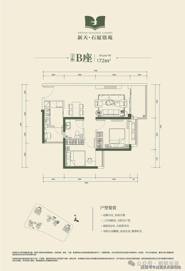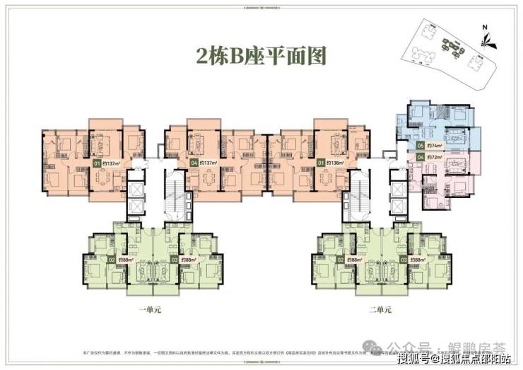🔺2栋B座二单元04、05户型:面积约为72-74㎡的2房2厅1卫。