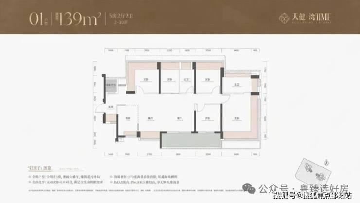 139平4房户型,同样以朝南、西南朝向为主,能够享受良好的采光和海景、山景资源。