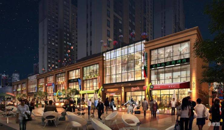 凤凰里商铺100%临街、100%餐饮、70年产权、约5.4米层高、约86%超高得铺率,空间方正,百变经营;