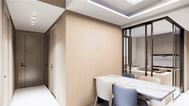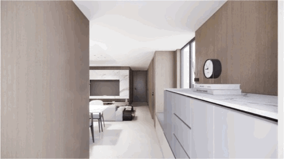 这还是一个百变户型,打通客厅和次卧,能将客厅从约3.2米宽瞬间拓展到约6.2米宽,空间尺度感拉满。
