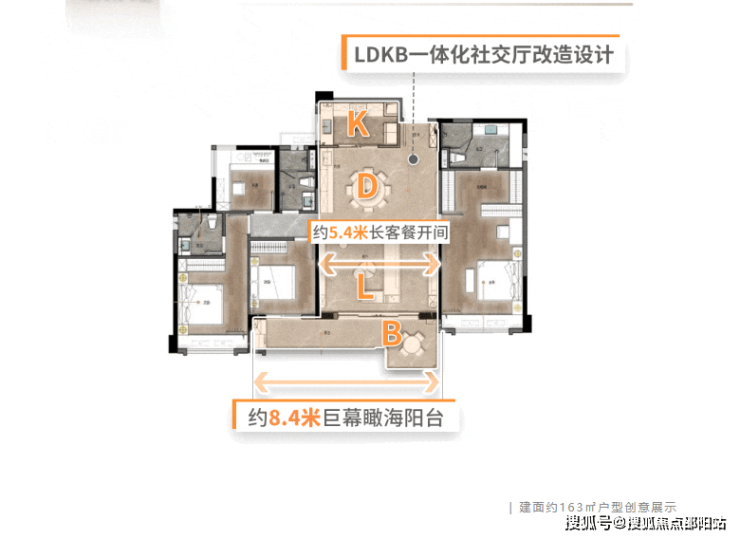 LDK一体化设计,打通玄关、客厅、餐厅、厨房,形成超大家庭欢聚厅,加上南北对流设计,让空间充满生命力。