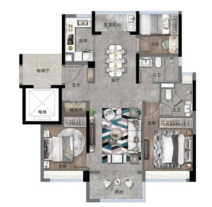 越秀·天悦金沙提供的户型设计注重实用性和舒适度。项目主打建面约95-143平方米的三房至四房户型,涵盖了多种面积段,适合不同家庭的需求。其中,95平方米的三房两厅两卫户型采用板式小高层设计,南北双阳台、纯南向全景飘窗,保证了充足的采光和优美的景观视野。125平方米的四房两厅两卫户型则采用了专梯专户设计,南向三面宽、6.85米景观阳台,LDKG布局提升了空间利用率和居住舒适度。此外,138平方米和125平方米的四房户型也各有特色,提供了更多的选择。