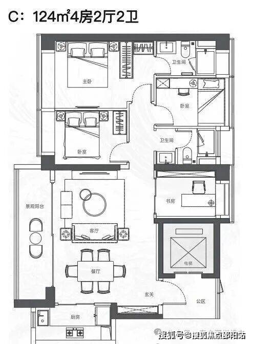该项目将推出大约380套住宅,建筑规划包括2栋塔楼,其中高区采用4梯4户的设计,低区则为5梯5户,确保了每户都能享有独立电梯厅的配置。
