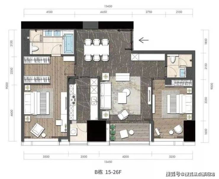 Ø双卧室分区布局,尊享私密生活;