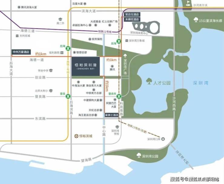 项目处在深圳湾后海金融区中轴之地,片区进驻总部企业约82家,包含约22家世界500强;项目200米范围内汇集了2、11、13号线(在建中)三条地铁线,更有“四横二纵”多维交通线路,零距离链接全球。