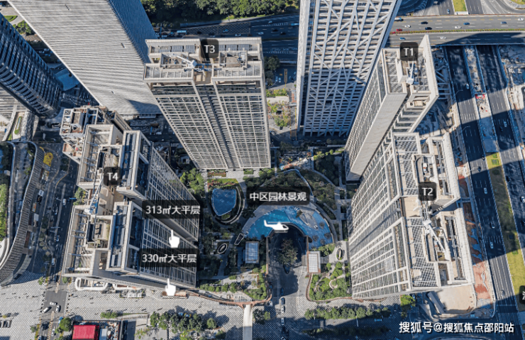 项目目前主要在售的是T3、T4公寓产品,建面约266-330平。两栋相较之下,T3栋的景观视野更好,客厅直面市民中心南广场的绿地。整体采用高档品质、空间开阔、舒适度高。