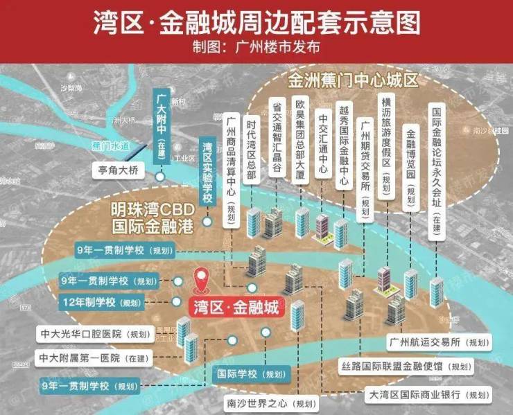 湾区·金融城周边配套齐全,涵盖教育、医疗、商业、休闲等多个领域: