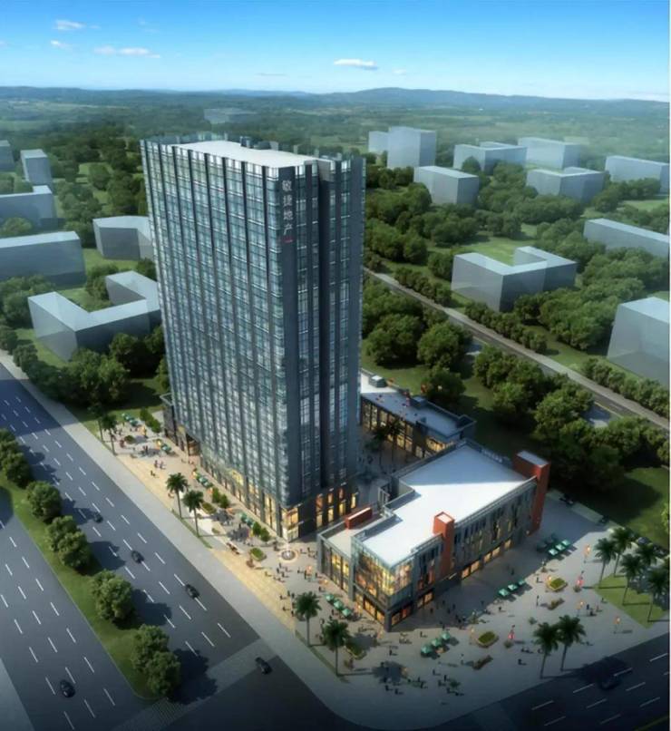 项目规划建筑共3栋,其中1栋19层高主体建筑,另外2栋2-4层低层建筑与主体建筑围合排布,主体建筑采用环绕式动漫产业街铺分布,有利于形成1-2层产业街铺的集群效应,有效打造动漫产业升级交易中心。