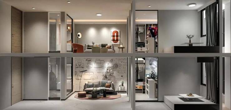 户型面积介于53-101㎡之间的套间、一房以及两房单位,买一得二,使用率高达200%,动漫办公空间更大、更轻松、更灵活多变。