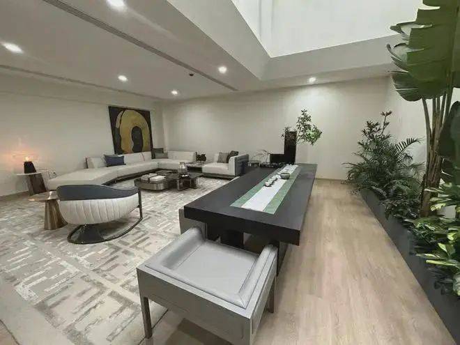 该地下拓展空间设计得比较有特色,有采光井,阳光可以照进来,保障了充足的采光,晚上喝茶品茗时,还能抬头看星星。