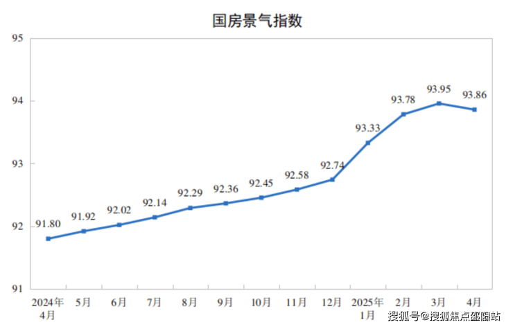 4月份,房地产开发景气指数(简称“国房景气指数”)为93.86。