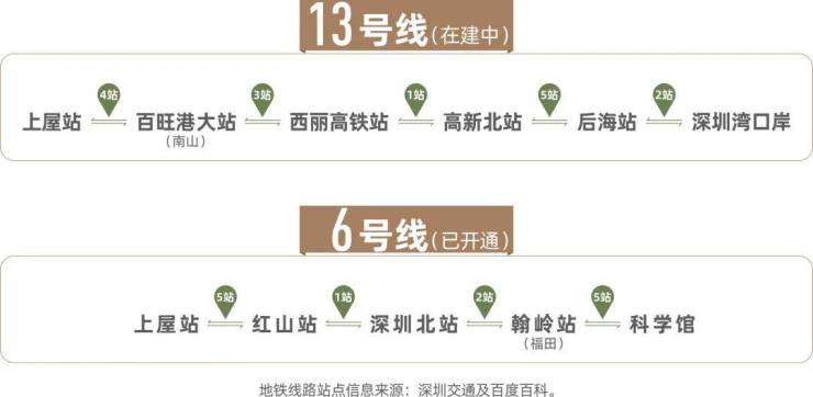 6号&13号地铁线交汇于此,13号地铁通车后,4站到南山,8站至科技园,出行极为便利。