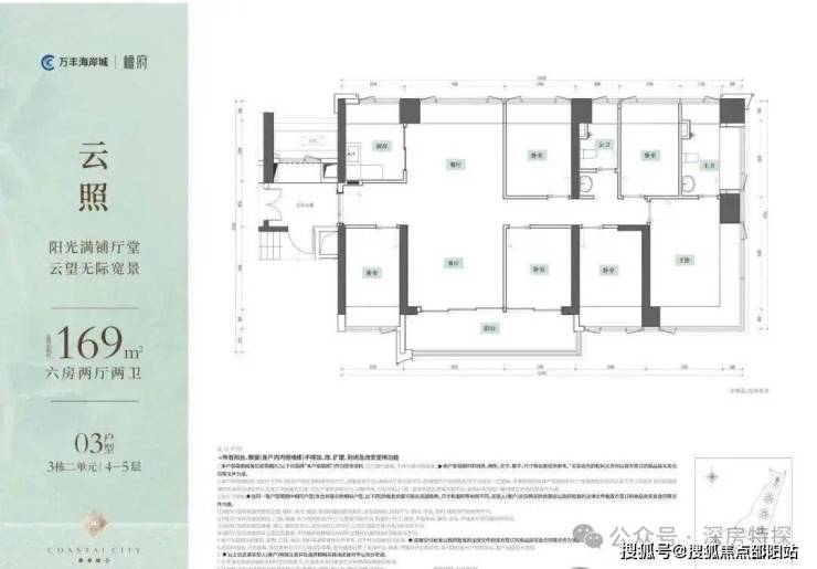 超16米东南采光面,阳台超7米宽;主卧进深4.5米,L型飘窗可270度景观。