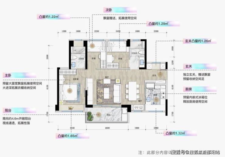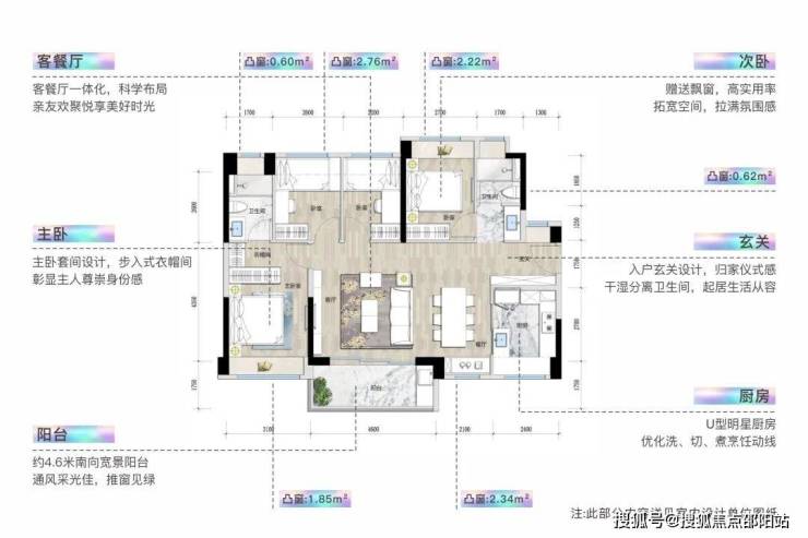 整体户型方正实用,多飘窗利用,79%超高使用率;
