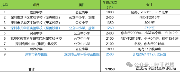 1家深圳市三级甲等综合医院,新华医院,2500个床位,预计2024年12月试运营