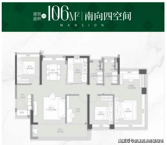 建面约106㎡舒适改善四空间: