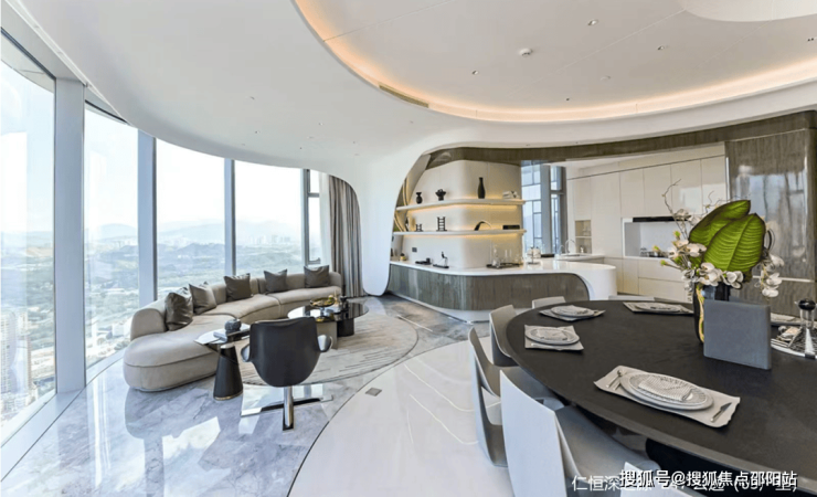 ◎云端环幕视野-约208米云端地标,270°环幕视野,定制超白三层中空LOW-E曲面玻璃,坐拥地标级城市景观与稀缺山水资源