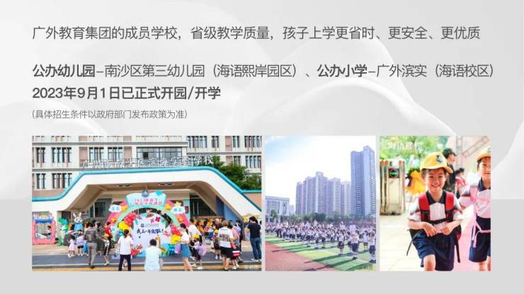 教育资源丰富,楼下有顶级名校广州外国语集团旗下滨海实验学校南校区(24个班)及15班的南沙第三幼儿园。让孩子赢在起跑线,而且不用每天接送、自己都可以走路上下学。