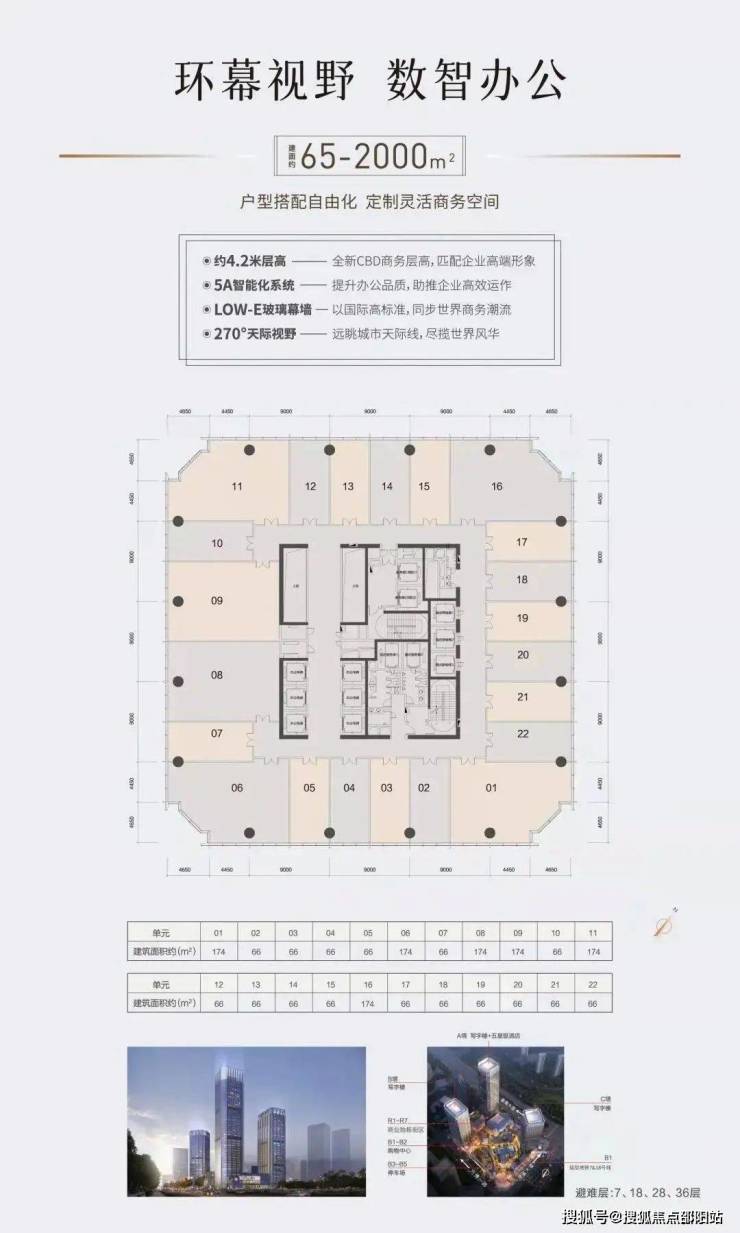 主推户型65-2000㎡超甲级5A总部写字楼,高实用率,户型搭配自由,定制您的灵活商务空间。