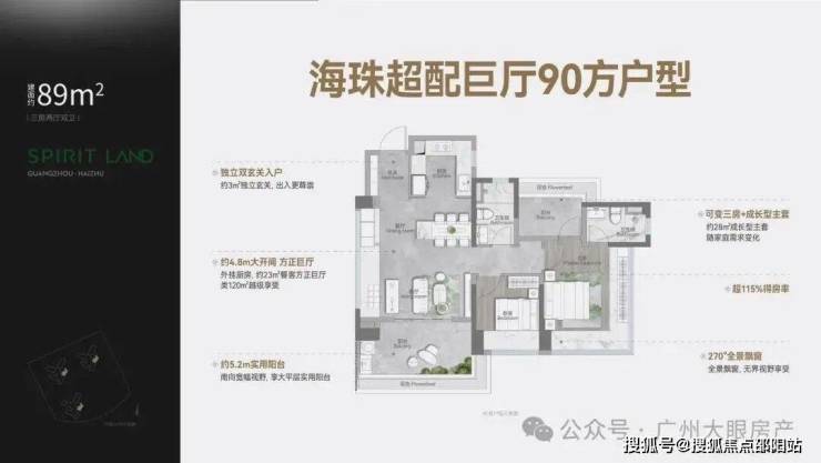 约28㎡成长型大主套 灵动可变三房 ,270°全景飘窗 无限广角
