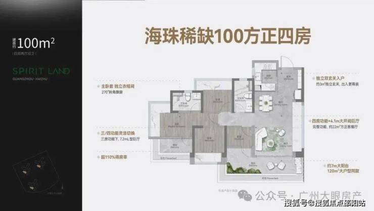 海珠唯一 100方内正四房,LDKG+X一体化 4.1m方正巨厅