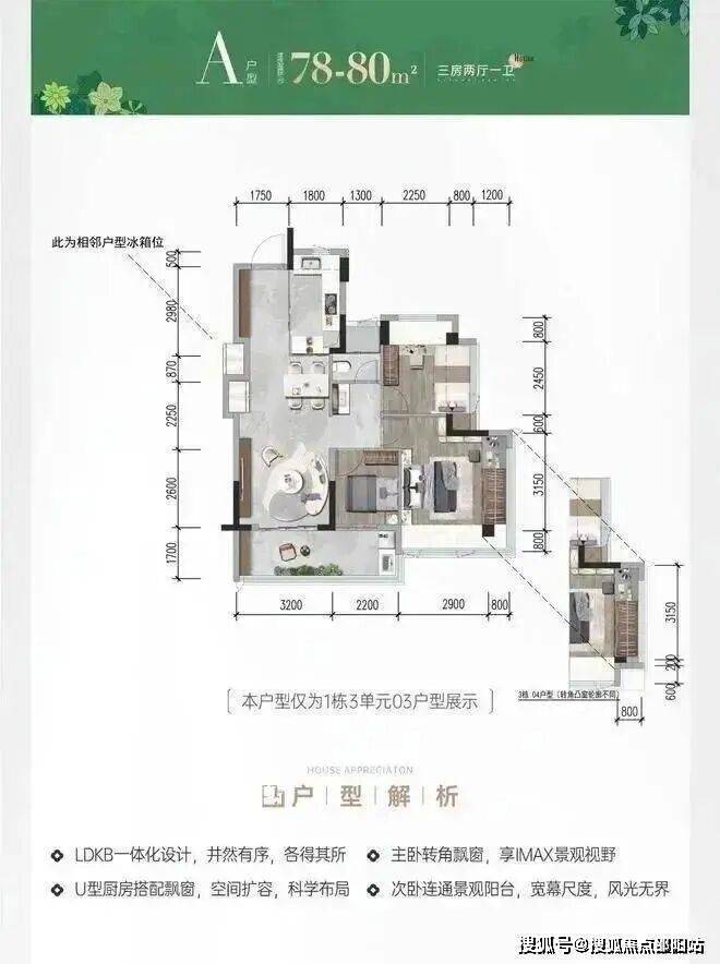 推售1栋3单元,共195套78-92㎡三房,78平三房仅有55套,使用率最高105%!