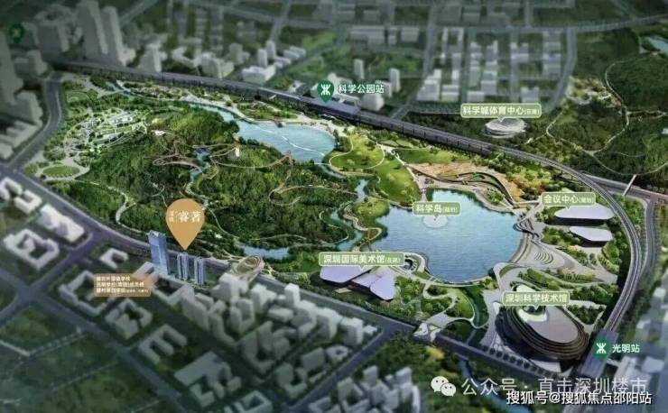 项目北侧的光明科学公园,总占地208万公顷,预计2024年完工总体工程的60%,并且同步开园一部分。