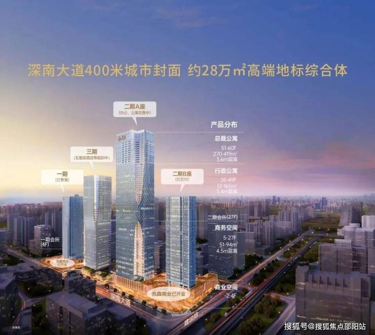 兆鑫汇金广场雄踞深南大道主轴,主塔楼为约262米云端地标建筑,与地王大厦、平安金融中心等共同构筑深圳城市天际线。项目坐落于罗湖核芯腹地,总建面约28万㎡,汇集高端公寓、总裁公寓、写字楼、潮流商业、品质住宅为一体的地标综合体。