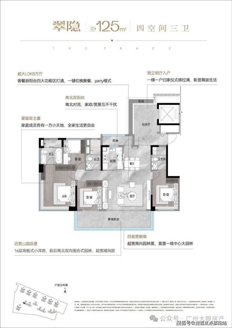 独梯入户、四面宽朝南、南北对流超大方厅...这些大平层级别配置,通通能够享有。