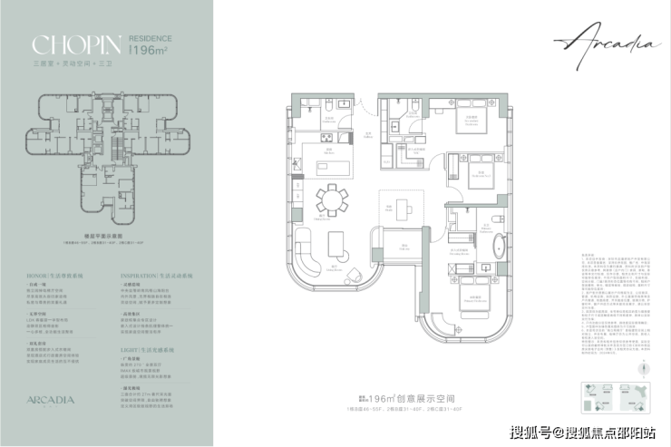 建面约196㎡户型是三居室+灵动空间+三卫的奢阔设计,让生活更加从容且惬意,匹配对生活有追求的商务精英或高净值人群的居住需求。