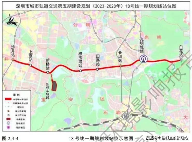 18号地铁线:该线路起于沙井,终至光明区白花站,全线长约18.7公里,设站8座,全部采用地下敷设方式建设,不过该线路因为沿线现状人口岗位密度相对较低,暂未被纳入五期规划。