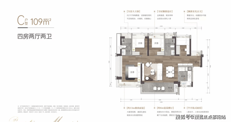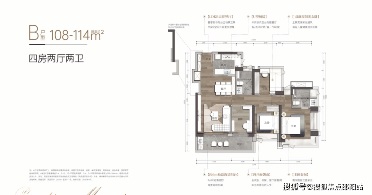 阅臻府约108-114㎡B户型以方正格局极致利用每一寸空间,将客厅、主卧、次卧等核心起居空间朝南布置,实现四开间南向瞰海的温暖舒适。