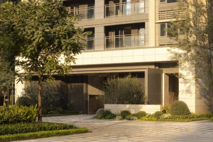 极具仪式感门廊、Logo景墙、植物造景等,赋予单元入户空间丰富多维的感受。愿居者能在这里卸下疲惫,回到家的港湾。