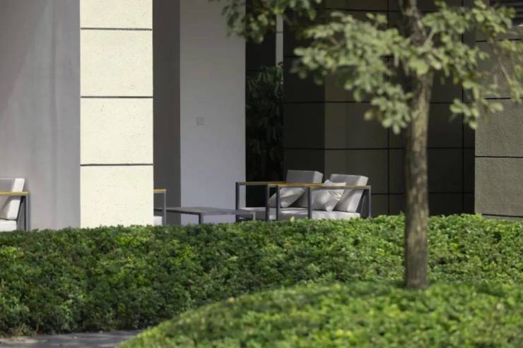 阳光绿谷以极简的笔触抒绘型格,以灌木创作群山绵延之势,山与林交织,透现出空间的美感与立体之感。放置休憩座位,构建充满乐趣的艺术和生活空间,置身其中令人心境恬淡。