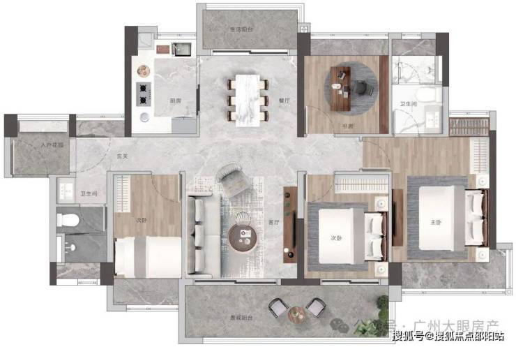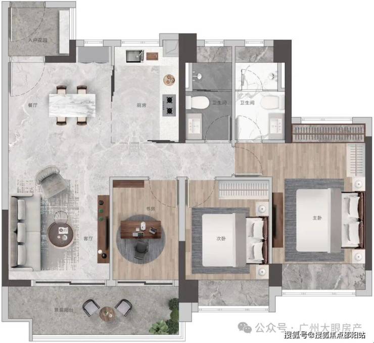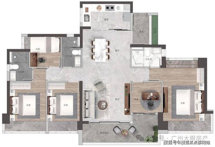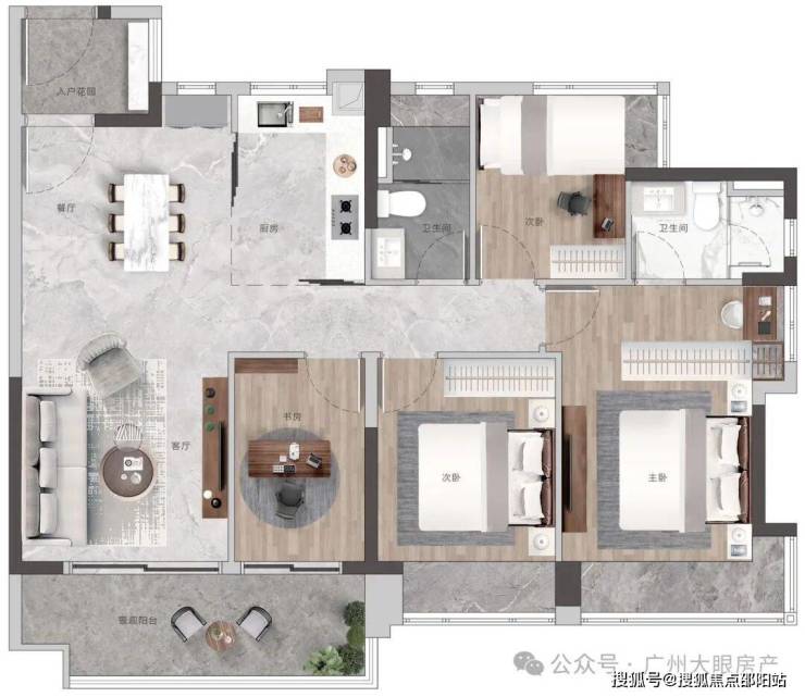 高配双主套三卫,书房可作主卧延展空间,打造总统级套房