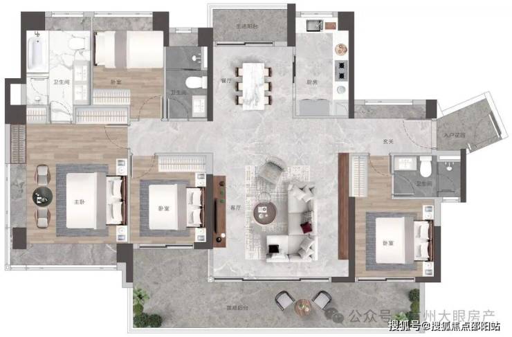 双主套三卫布局,轻松容纳大家庭,多代同堂其乐融融