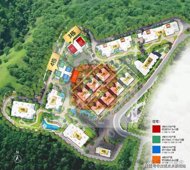 三栋楼王建面约287㎡,三梯两户,最高36层,层高3.15m