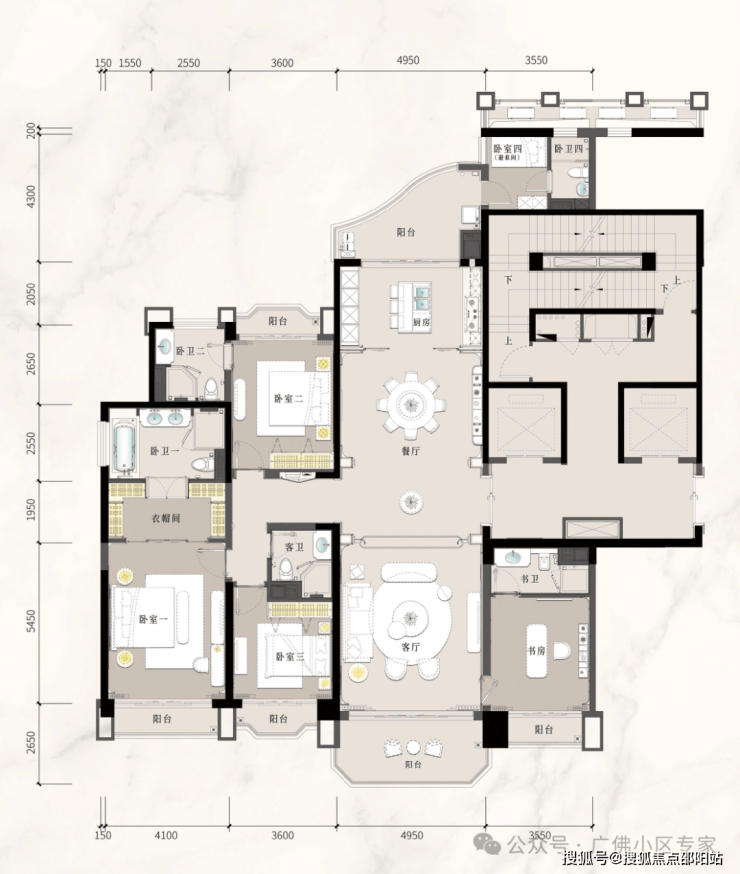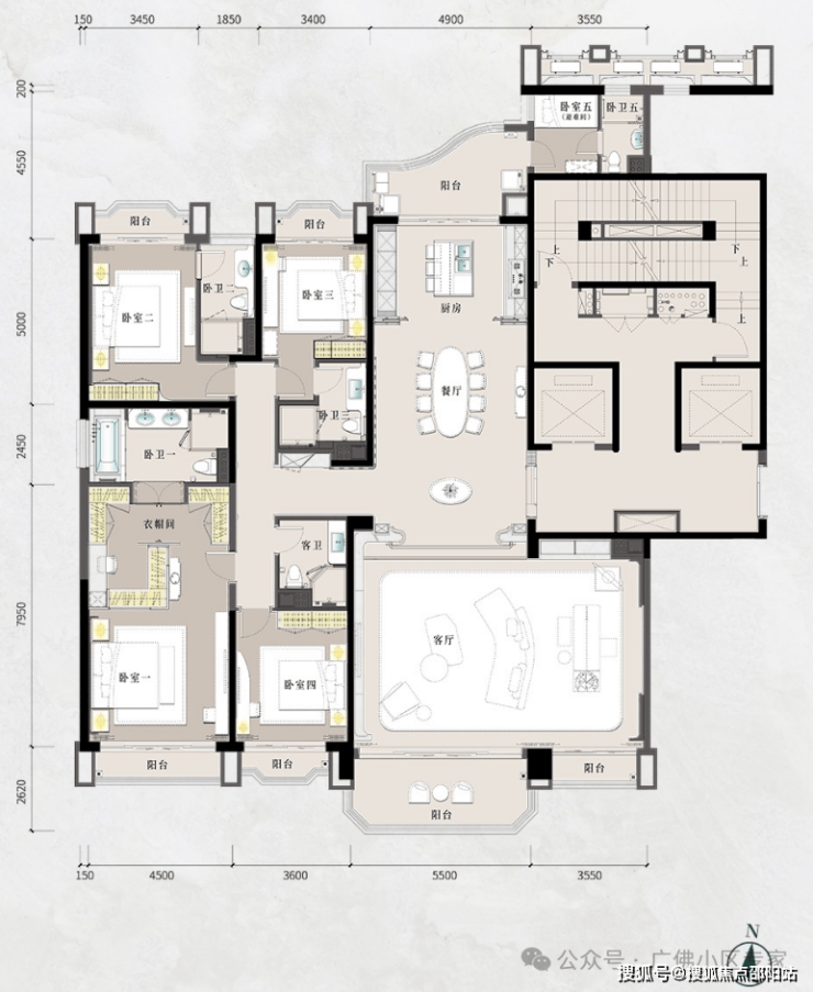 🌟 个性定制灵活双厅打通拥有约9米宽的江景,双客厅面积可达约50㎡;