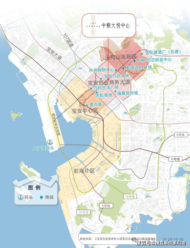 中粮大悦中心处粤港澳大湾区中轴线起点,雄踞前海和宝中两大城市新客厅的黄金交汇点,107黄金商务带+湾区商务大道双向垂直拉通,“宝中行政商务区’与“尖岗山新兴产业区”的核心商务枢纽,由中粮大悦城央企倾力打造的重资产项目。