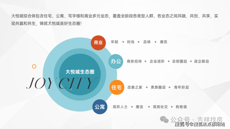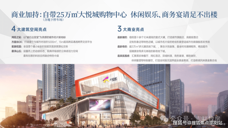 ● 约73万㎡大悦城综合体之上,项目涵盖商业体量约25万㎡大悦城旗舰商业、约13万㎡总部办公、壹号华宅、潮奢寓等多元业态,以强大资源聚合能力,将商务、商业、居住、生态等融为一体,打造城芯大悦生态圈,开拓更为开放、融合、多元的商务场景,成就未来总部商务聚核效应,铸就城芯大悦城生态圈。