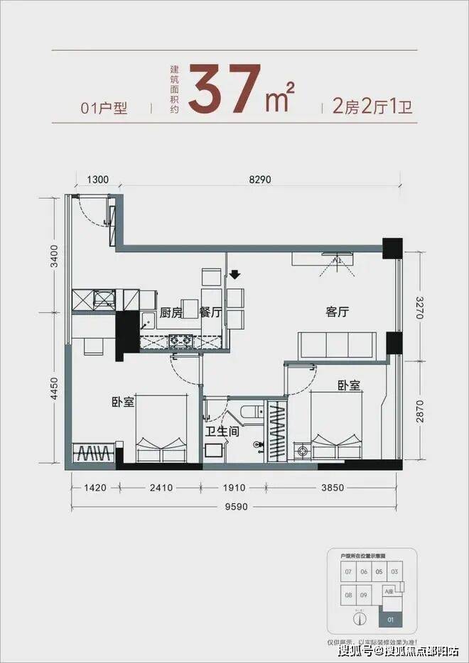 主力户型:约 37 平方米的稀缺精装 2 房,目前出售 6-8 层 24 户。