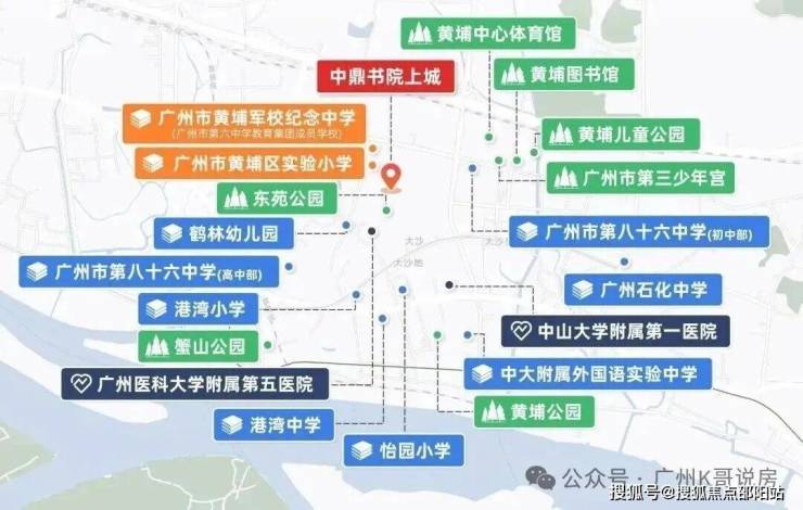 除了自配幼儿园,项目还对口广州市黄埔区实验小学、广州市黄埔军校纪念中学(广州市第六中学教育集团成员校),打通12年优质教育。