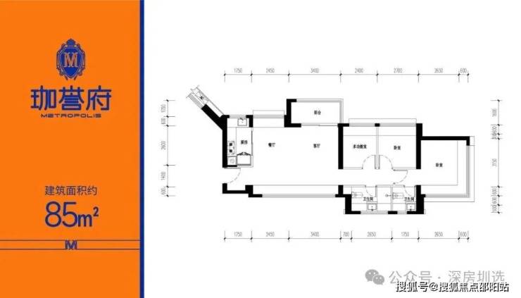 | 约85㎡(横厅)三房两厅两卫【总价约415-455万】