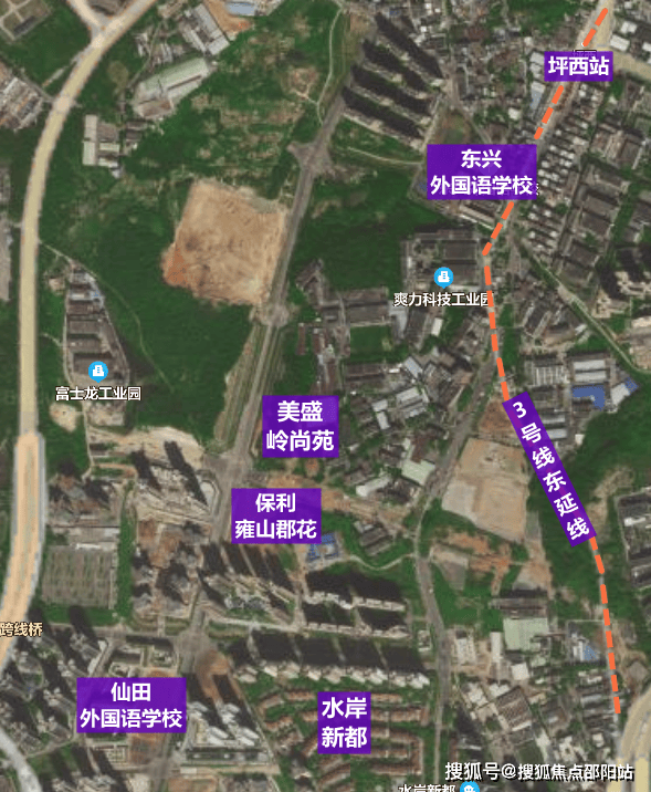 美盛岭尚苑,位于龙岗区龙岗街道龙凤路与龙坪路交汇处,项目所在片区靠近坪地国际低碳城,近年来该片区一座座楼盘拔地而起,改出片区新面貌,造就新生活。项目北侧及东南侧规划有2所学校,1所医院,西侧靠近红花岭低碳生态公园,3号东延线“坪西站”距离约1.1公里,“新生站”距离约1.3公里。