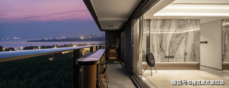 外立面提取滨海湾的浪漫曲线元素,打造弧形阳台。明快的金属线条结合大面积中空玻璃,外立面颜值不输深圳顶级豪宅,更多了一份刚柔并济的艺术气息。