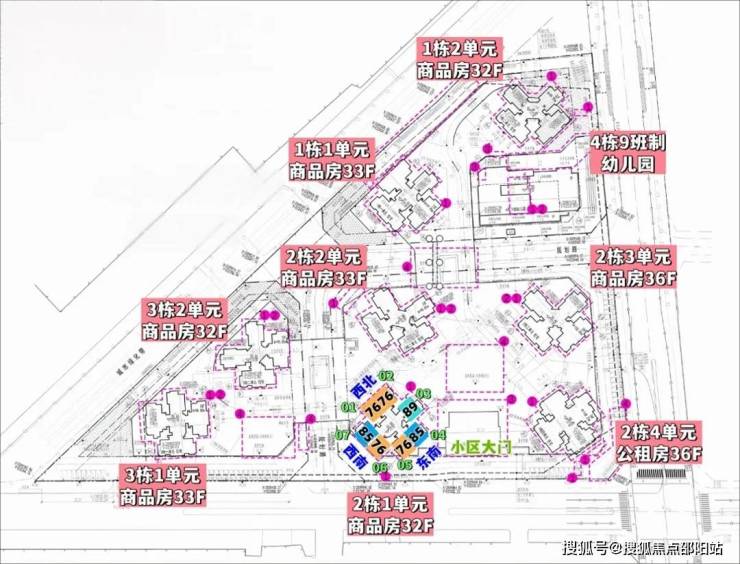 天健瑞云府,由天健集团+深福保+深高新集团3家国企联合打造,总占地面积约3.6万㎡,总建筑面积约22.49万㎡,计容建筑面积约16.46万㎡,容积率4.75,绿化率30%,共由8栋32-36层高住宅组成,分3个地块开发,不过花园都是共享连通在一起的,其中1栋1单元/2栋2单元/3栋1单元住宅33F,1栋2单元/2栋1单元/3栋2单元住宅32F,2栋3单元/2栋4单元住宅36层,4栋是1所9班制幼儿园。
