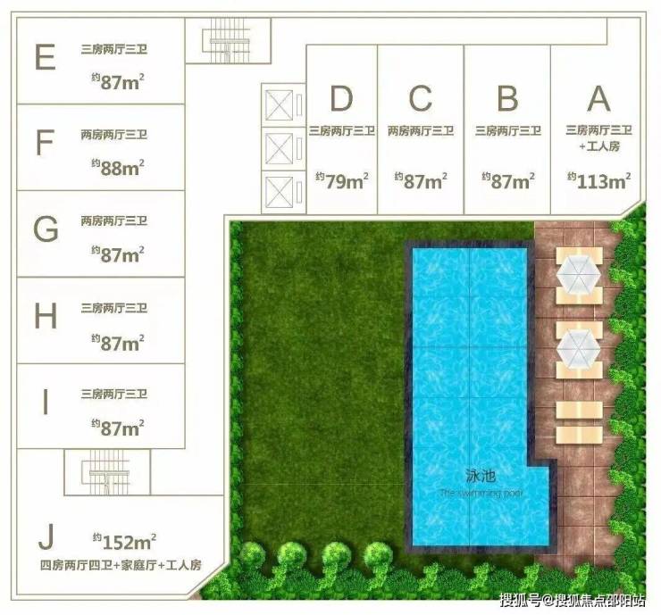 户型面积:79㎡、87-88㎡、113㎡、152㎡(复式设计,实用面积126-206㎡)