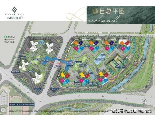 休闲方面,名居山河里紧邻梧桐山河碧道,建设长度约2.4公里,建面约15.66万㎡,环山亲水,串联街心公园与滨河绿廊,打造慢行系统,匠心创著专属绿海水岸IP,成就城市奢适自然主场。